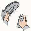 靴にクリームをつけ、ムラなく薄くのばして塗り、革に栄養と色ツヤを補給します。
